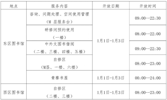 根据《贵州师范大学办公室关于元旦节放假的通知》要求,图书馆开放安排如下: